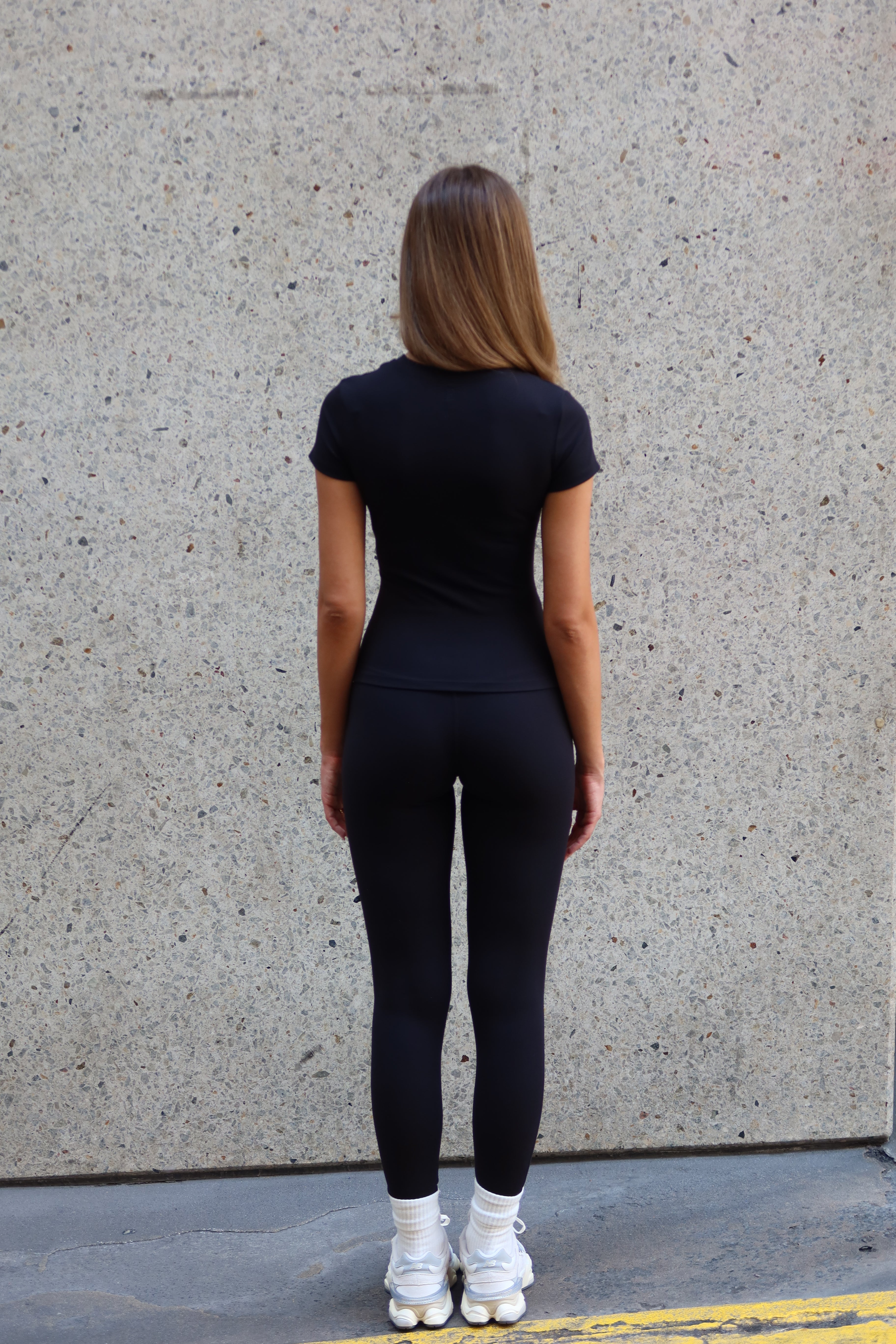 The perfect tee, elevated. The Elloré Sport Basic T-Shirt is a refined, body-hugging essential designed to bring softness, structure and ease into your everyday uniform. Crafted from our Soft-Touch Performance fabric, it offers a smooth, sculpting feel that moves with you - breathable enough for Pilates, polished enough for the airport and effortless for everything in between.
